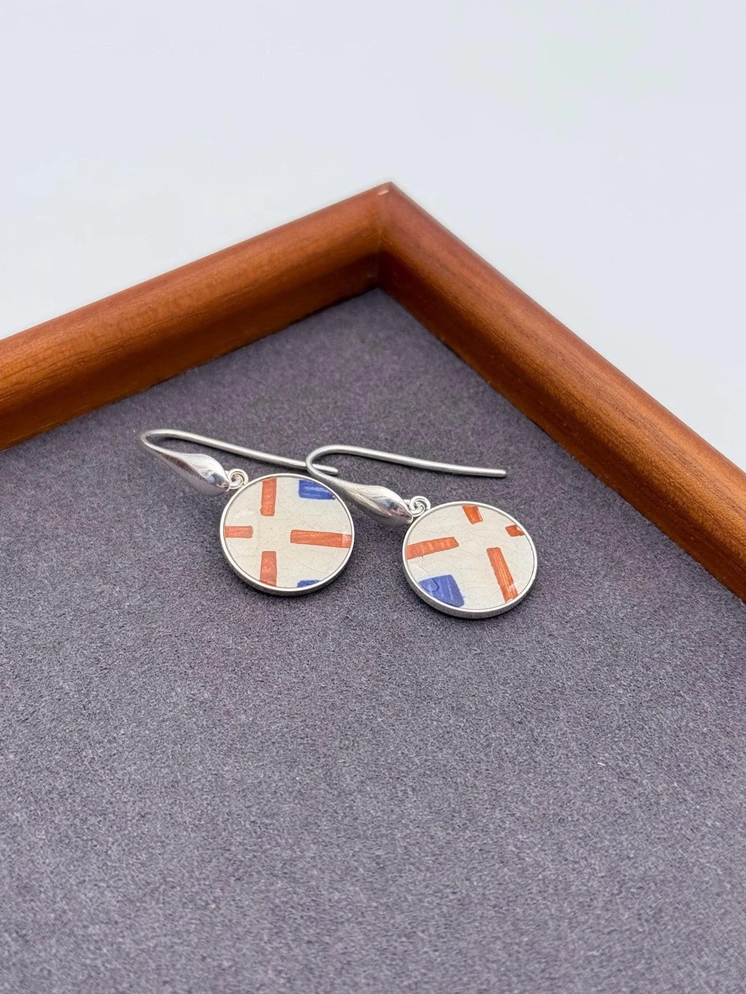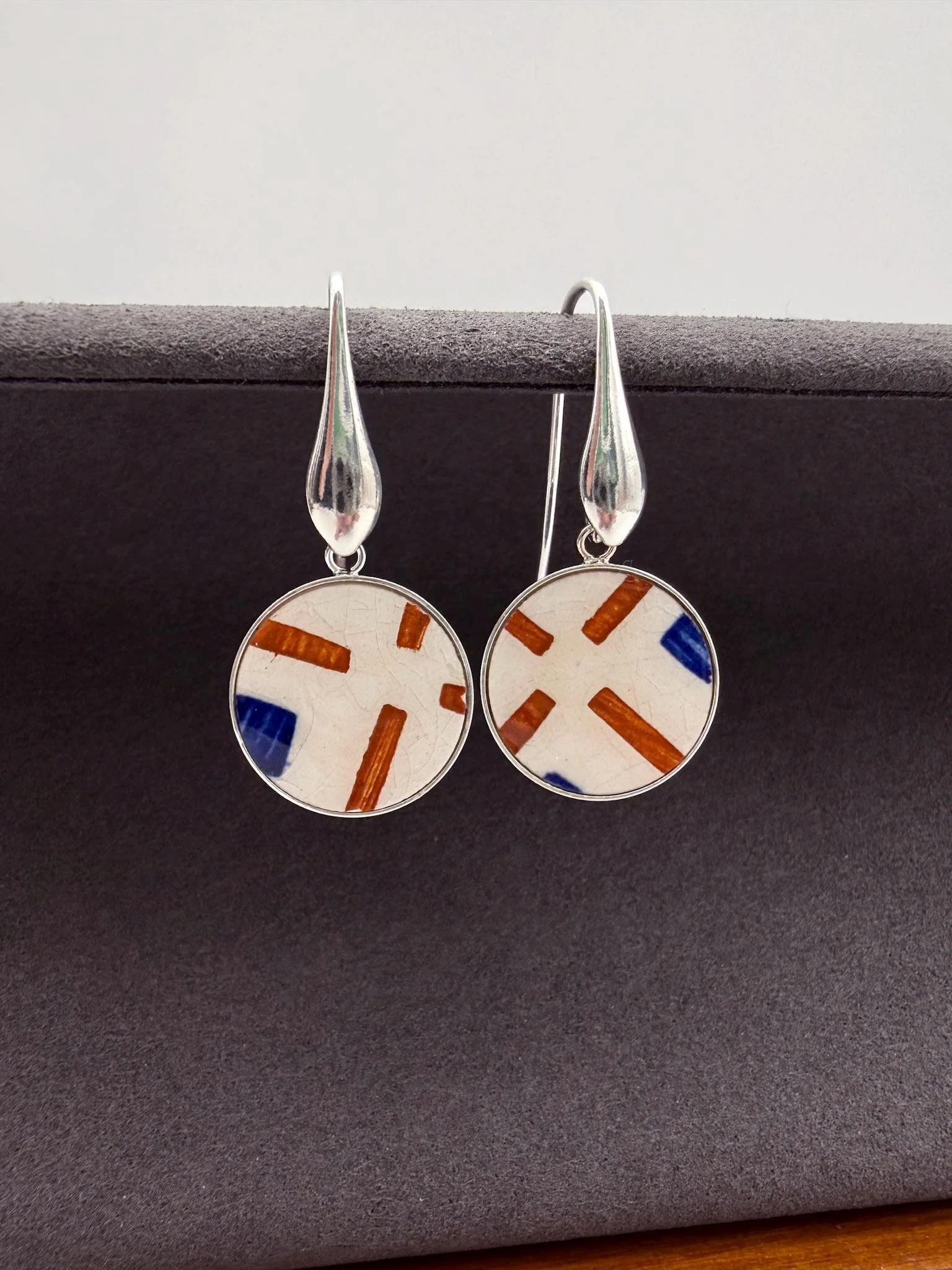 Boucles d’oreilles en argent massif et faïence de Lunéville, bijou artisanal vintage