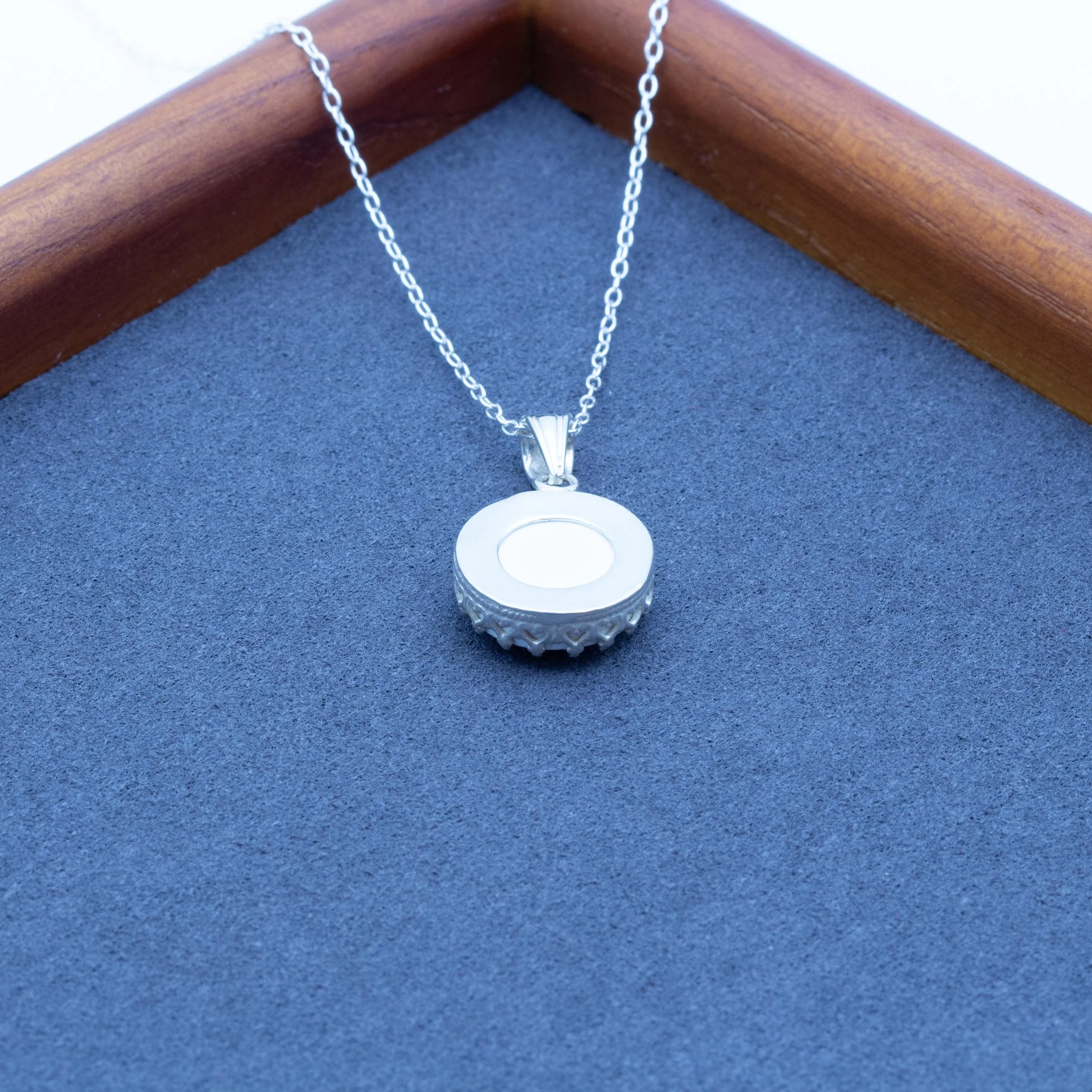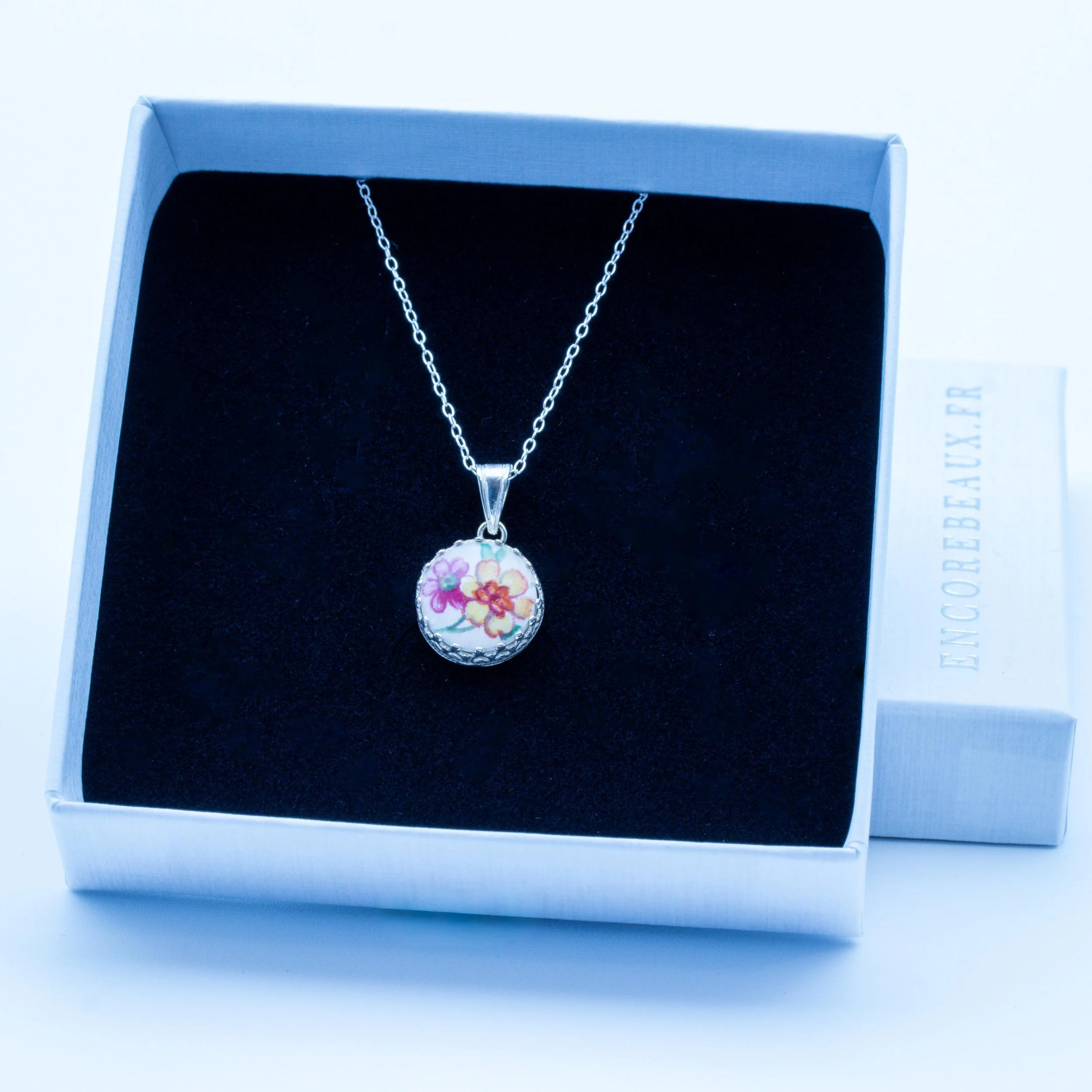 Ce collier en argent massif met en valeur un fragment authentique de faïence ancienne provenant de Saint-Amand-les-Eaux, ville historiquement liée à la tradition faïencière. ⠀ Son motif floral délicat aux teintes rose, jaune et vert évoque la douceur des décors anciens. Chaque détail témoigne d’un savoir-faire disparu et redonne vie à un objet chargé d’histoire. ⠀ Monté dans un pendentif en argent, ce bijou est entièrement réalisé à la main dans mon atelier situé au cœur de l’Amandinois. ⠀ C’est une pièce unique, à la fois discrète, lumineuse et profondément symbolique. ⠀ Livraison disponible en Europe. ⠀ Détails ⠀ • Matière du pendentif : argent massif • Chaîne : argent 925 • Fragment : faïence ancienne de Saint-Amand-les-Eaux • Diamètre du pendentif : 12 mm • Fabrication : entièrement fait main en France • Origine : vaisselle ancienne recyclée • Pièce unique ⠀ Ce qui rend ce bijou unique ⠀ • Véritable faïence ancienne, pas une reproduction • Fabrication artisanale dans mon atelier • Chaque pièce possède son histoire • Bijou léger et agréable à porter • Idéal comme cadeau symbolique ou noce de faïence ⠀ Petites notes à savoir ⠀ • De légères traces du temps peuvent être présentes sur la faïence, elles témoignent de son authenticité • Évitez le contact prolongé avec l’eau et les parfums • Chaque écran peut légèrement modifier la perception des couleurs ⠀ Mon processus de création ⠀ Je sélectionne chaque fragment de faïence ancienne avec attention, puis je le découpe, le façonne et le monte entièrement à la main dans mon atelier situé à proximité de Saint-Amand-les-Eaux. ⠀ Chaque bijou est une façon de préserver un fragment du patrimoine local et de lui offrir une nouvelle vie. ⠀ Emballage ⠀ Votre bijou est livré dans un écrin prêt à offrir. ⠀ 🎁 Chaque commande est prête à offrir : écrin et chiffonnette, carte d’entretien, protection et envoi suivi. 🎥 Une vidéo de mon processus d’emballage est disponible sur mon profil de boutique (vidéo épinglée).